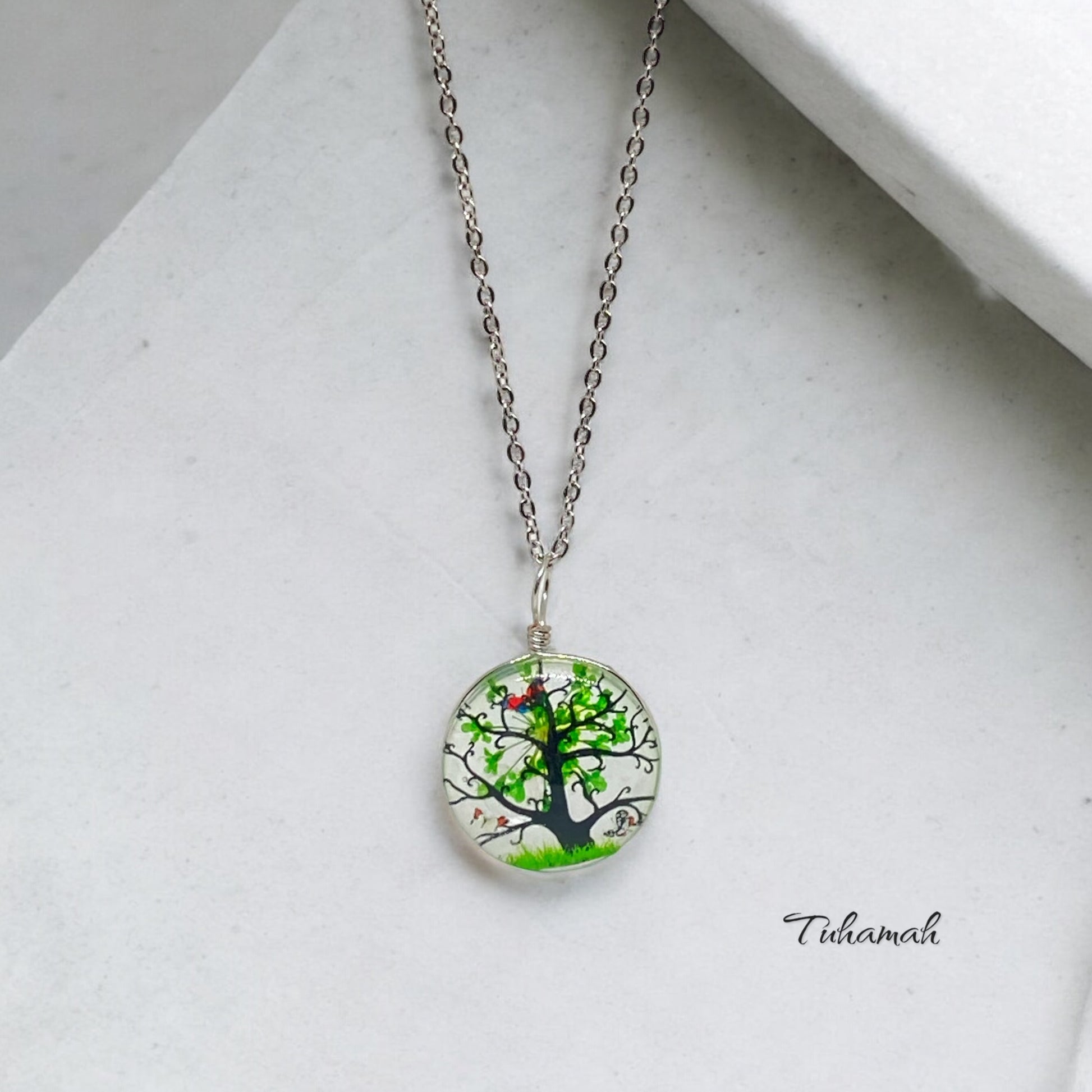 Elegant silver necklace with a glass ball design, made of natural flowers. This necklace shines with a delicate silver chain, making it the perfect piece for girls looking for simple elegance and beauty.